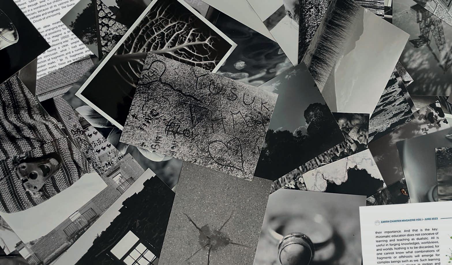 In a world increasingly saturated with words, sometimes images tell the story best. Picture this: a quiet room where a circle of students from diverse backgrounds sits surrounded by an array of evocative photographs—each image a portal to unspoken thoughts, ideas and feelings. This scene unfolds during a workshop in November 2024, where students from MTU Crawford College of Art and Design’s MA in Arts and Engagement and SPA in Eco Arts Practice delved into the art of elicitation of thoughts, concepts, metaphors and emotional resonance through Hermann’s photo prints.