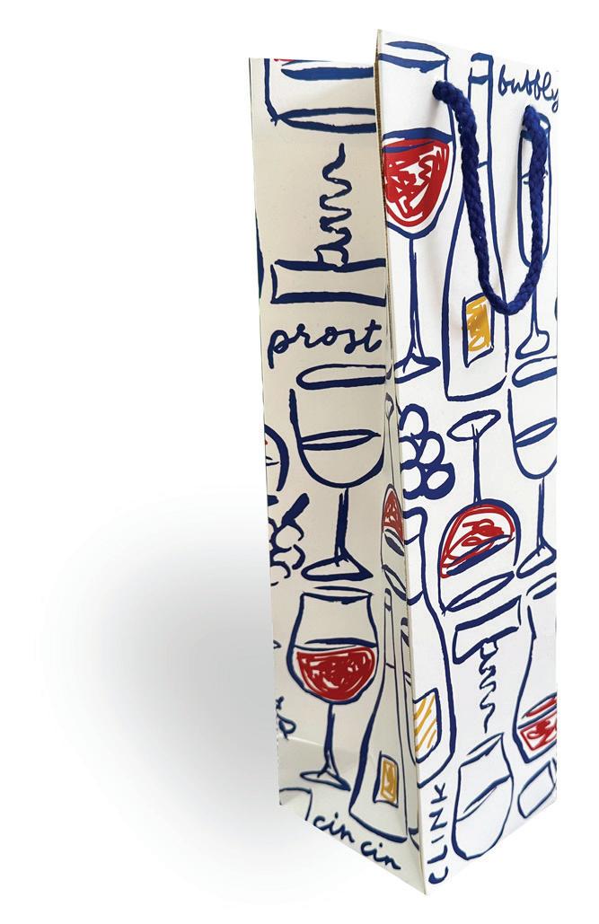 Our Wine Gift Bags come in five fun illustrated designs and look great paired with our Patterned Tissue Paper! Each bag is printed on heavy coated luxe stock with printed interior liner and coordinating woven cord handle.