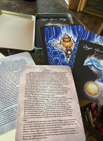 The Inner Alliance Animal Oracle is a collection of 54 images and messages for reflection and growth. Each has an Animal holding a human figure along with thoughtful writing that instigates deep connection with the reader. The enchanting watercolors provide focus and reveal hidden meanings to the viewer. Safely nested in a tin with cover art, the enlightening assemblage is treasure like. Created to ease the anxiety of any situation and provide purpose and intention for the viewers day and night, the Oracle Deck comes to life with its illustrations words and feel. -World Wide
