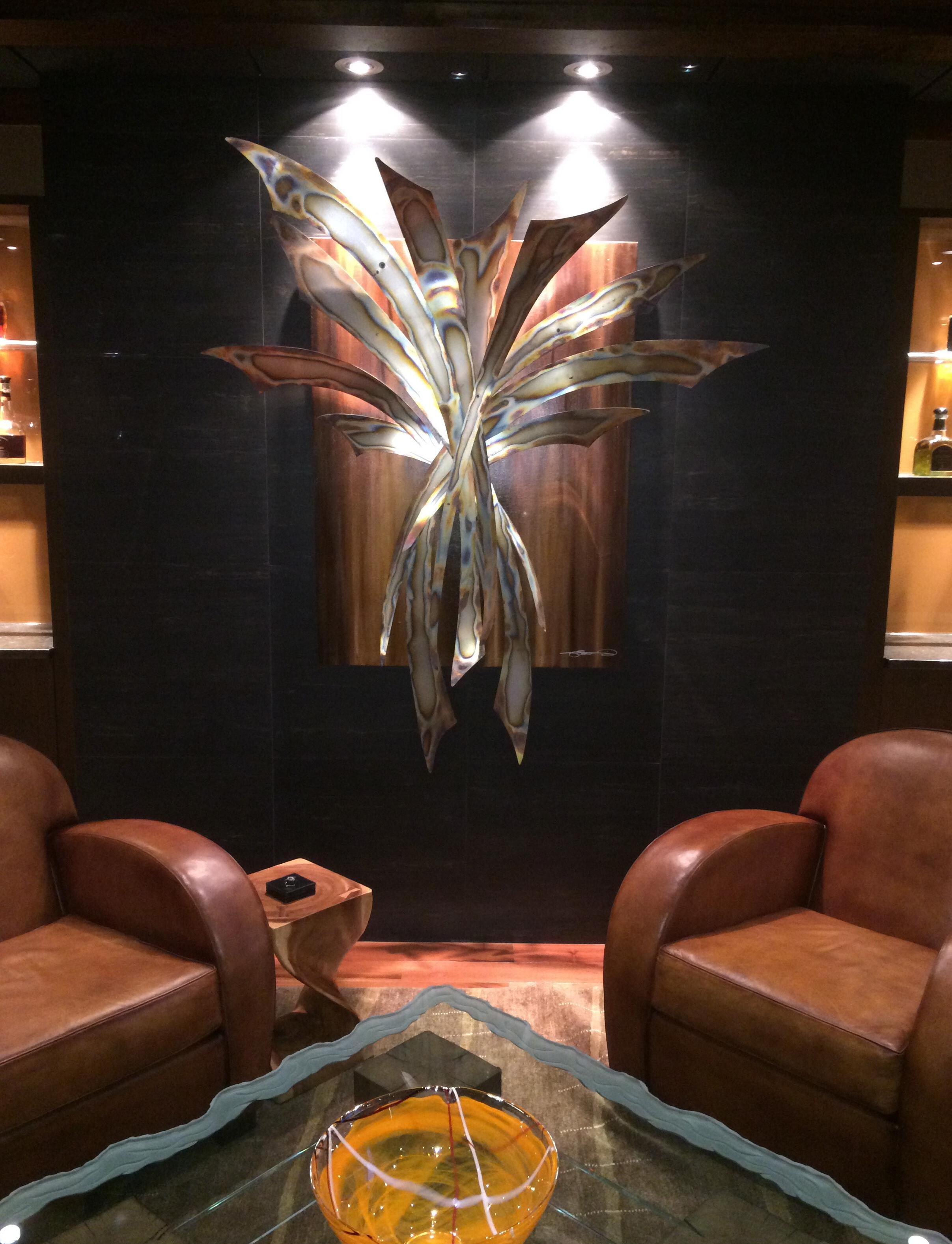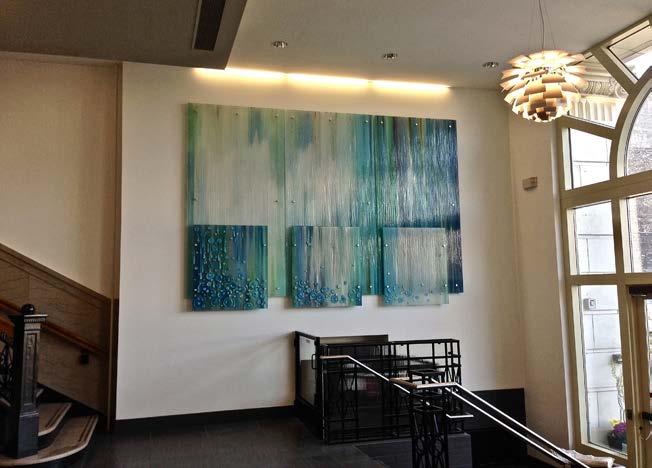 works with her clients to create custom pieces specific to the needs of a particular space and desires. From corporate art in offices, public art for events, hotels, and restaurants, to residential work & special gifts.