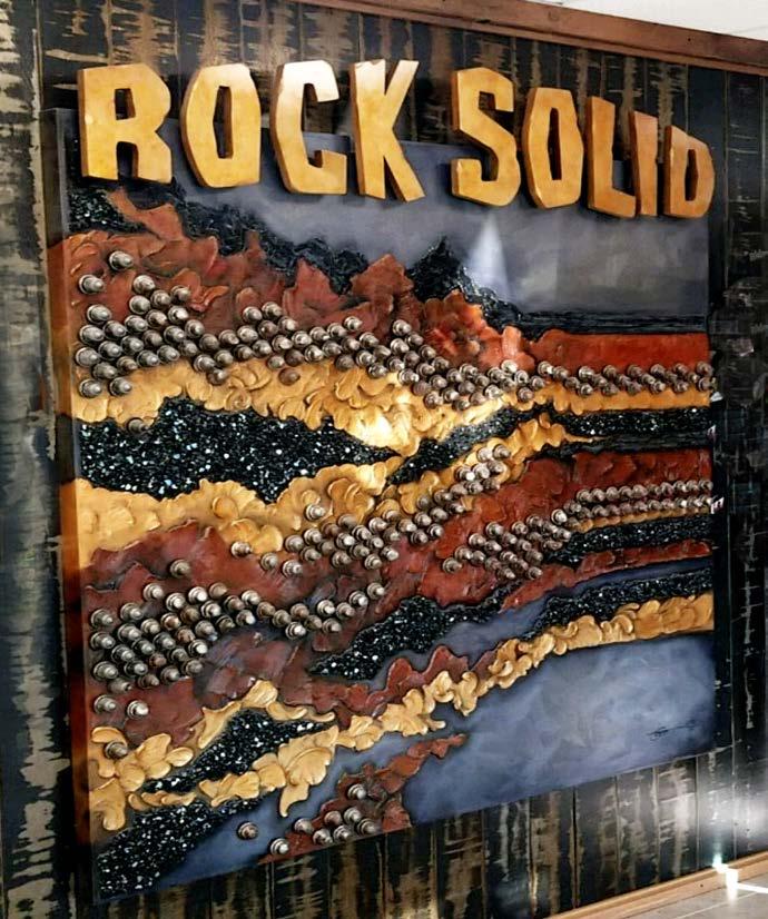 Art enhances the experience of clients and employees for any company. The Rock Solid custom art engages and sets the tone for everyone visiting and working at this Road Building Company’s new headquarters- very outside the usual corporate feel.