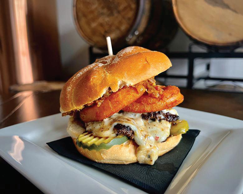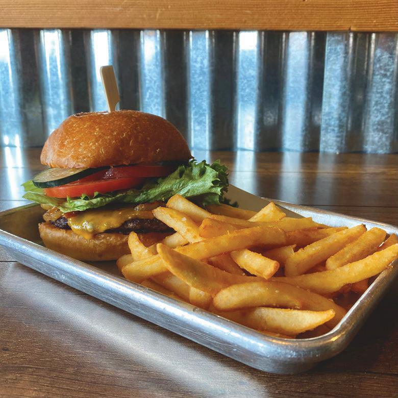 features local Pitchfork-T Ranch grass fed beef patty topped with Nashville hot & spicy fried pickles, house slaw, comeback sauce & American cheese on a fresh baked M’s Bakery bun.