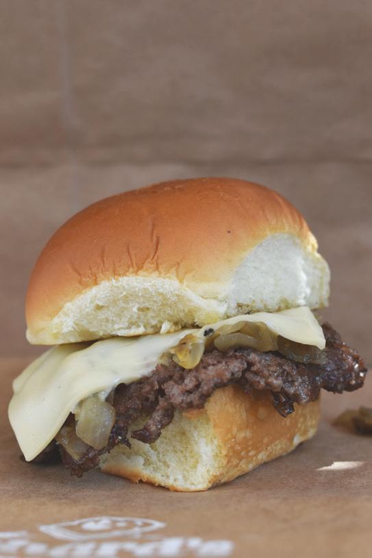 features house made veggie patty topped with griddled onions, pickles, shrettuce, American cheese & supreme sauce on a fresh baked M’s Bakery bun.
