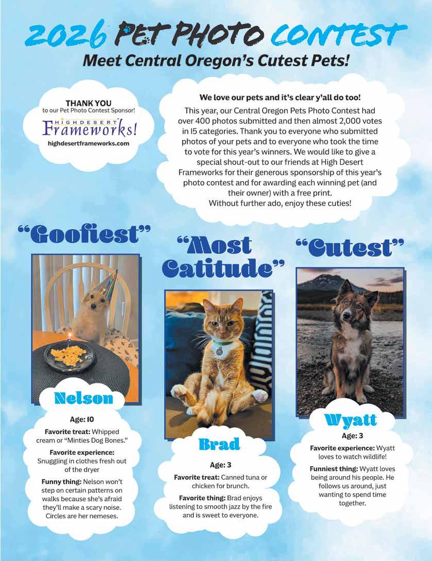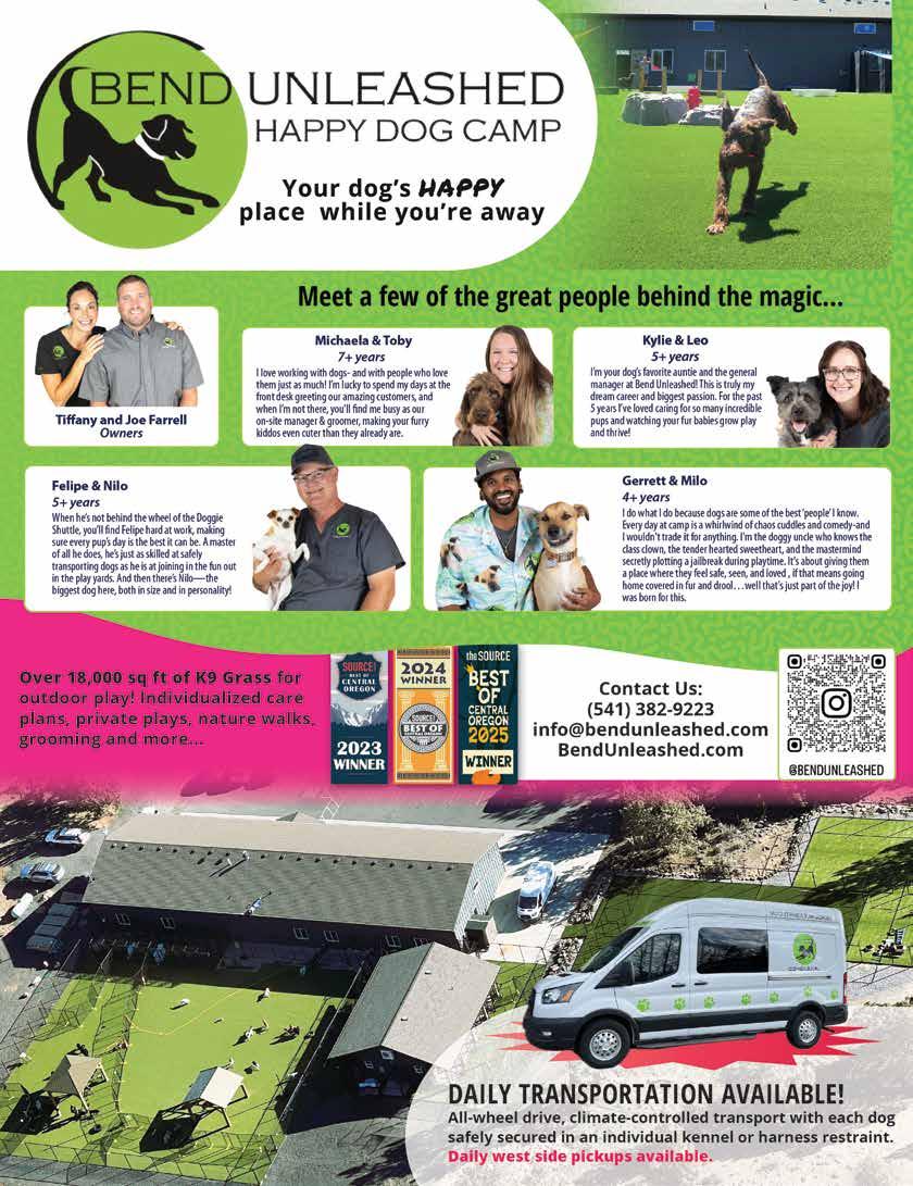 This issue also shares stories about a rescue group specializing in finding good homes for restless herding dogs and a business that takes pride in picking up the stink. We talk with the Pet Evacuation Team working miracles under terrifying circumstances and a man so heartbroken over losing his best bud that he immortalized him in a children’s book. There’s also a miniature donkey stealing hearts in Prineville and folks, so attached to their furbabies, they take them to work because, why wouldn’t you?