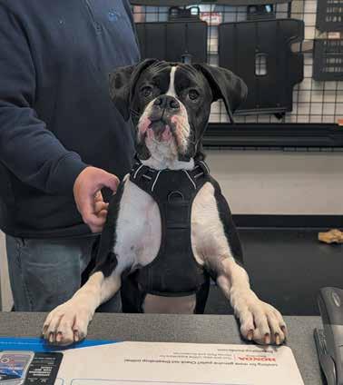 Adds Wood: “He’s a very mild dog. He doesn’t bark. People love to come feed him. Sometimes, he’ll be out on the couch (in the waiting area), just hanging out with customers and watching TV. The GM loves to come hang out with him, and the sales managers always come and see him. He’s a very chill dog, and he’s so good for morale.”