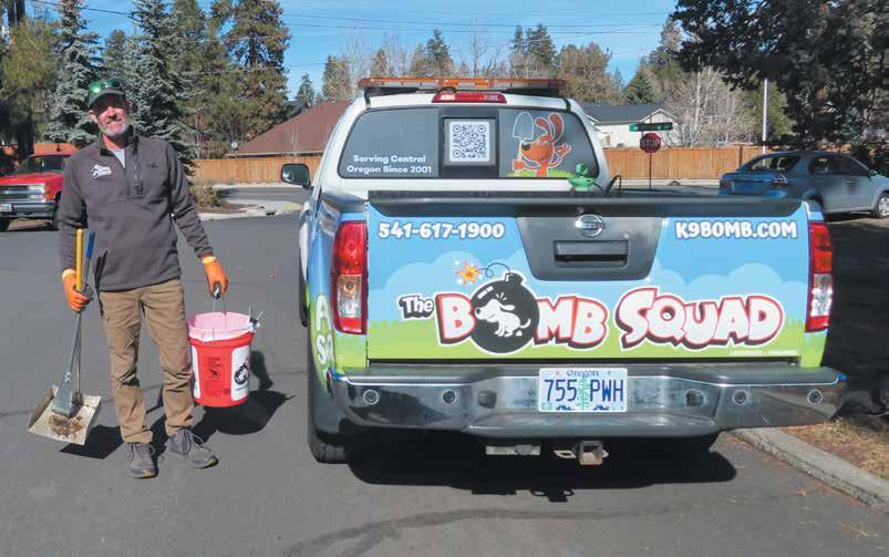 Frankle kept “The Bomb Squad,” however, since its name recognition as the longest-running poop-scoop biz in Central Oregon is worth more than its weight in — well, never mind. After 12 years and many longterm clients (“I’ve seen dogs grow from puppies to seniors”), Frankle says he can count on one hand the times he’s accidently stepped in poop.