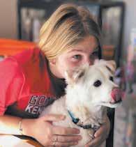 At a recent adoption event in Redmond, Herding Dog Rescue President Jessi Harrison cuddles with Briar, who came from a shelter in San Francisco.