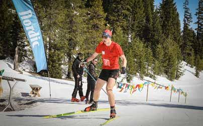 Racers begin with the Alpine Leg, which starts at the top of Mt. Bachelor’s Red Chair lift. Skiers must sprint 200 feet uphill without their skis, find their skis, put them on and ski down the Leeway run. The run is considered beginner/intermediate in difficulty. All participants must wear a helmet and navigate the gates on their way to the exchange point at the bottom of Red Chair, near West Village Lodge.