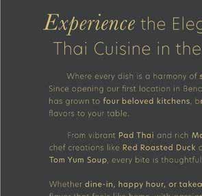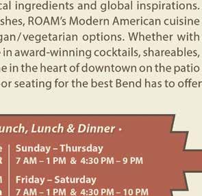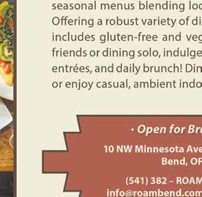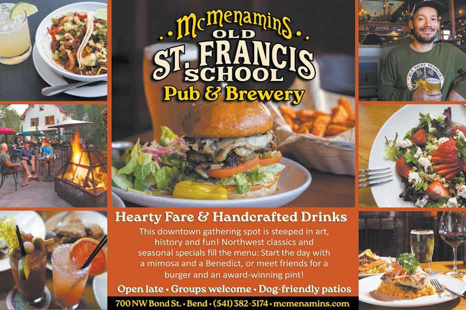 Discover a cozy space for casual lakeside dining, where you can gather and create lasting memories against the majestic views of Mt. Bachelor. Lounge with the whole family in the dining room, warm up by the fireplace in the bar or roast s’mores under the starlit sky on the outdoor patio. 17750 Caldera Springs Dr., calderasprings. com/lake-house-restaurant 541-593-4855.