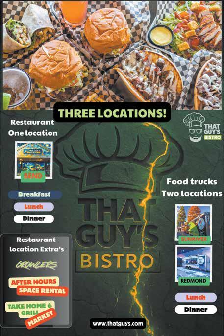 Delicious and quick Thai food from those who brought Bend’s Noi Thai, this food truck serves all the favorite classics in the indoor/outdoor food cart lot at River’s Place. 787 NE Purcell Blvd., baitongonwheels. com 541-799-7878.