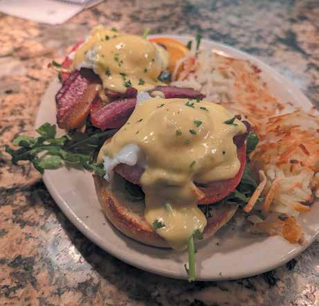 A bakery case, plus breakfast and lunch featuring French Toast, Eggs Benedicts and other yummy brunch items.