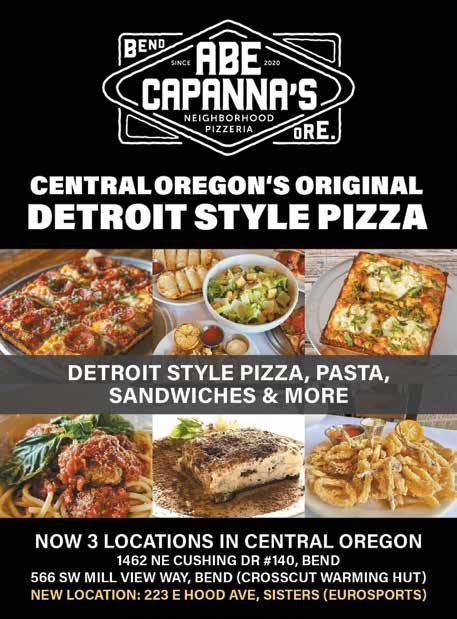 Pizza with toppings to the edge, plus classic sides, salads, sandwiches and rotating beer taps, this long-time joint offers plenty of indoor seating, delivery and takeout options. 1115 Northeast Third St., abbys.com/locations/oregon/bend 541-382-7372.