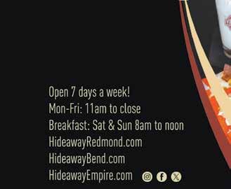 Great food, great brews and great views at Sunriver Resort Lodge, serving pub apps, shared plates, salads and entrees to delight all appetites. Saturday night live music! 17600 Center Dr., owls-nest.goto-restaurants.com 541-593-3730.