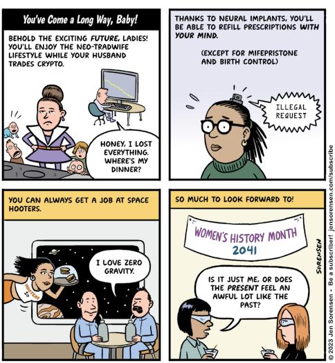 Amy Alkon, Rob Brezsney, Brendan Emmett Quigley, Jen Sorensen, Pearl Stark, Tom Tomorrow, Matt Wuerker