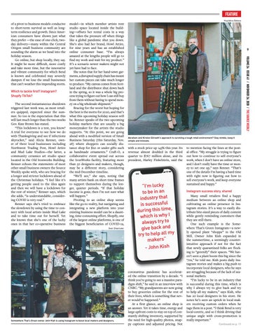 to mention facing the lines at the postal office. “My struggle is trying to figure out how to continue to sell everyone’s work, when I don’t have an online store, and I don’t really have the time or money to set one up,” says Renner. “That’s one of the details I’m having a hard time with right now is figuring out how to sell everyone’s work, and keep everyone sustained and happy.” Instagram success story, shared Many small retailers find a happy medium between an online shop and cultivating an online presence in Instagram stories. It’s a way to easily distribute bite-sized pieces of daily content while gently reminding customers that they are still there. One such example is the Somewhere That’s Green Instagram—a newly opened plant “shoppe” in the Old Mill. Owner John Kish expanded in the summertime, a seemingly counterintuitive approach if not for the fact that newly quarantined folks are flocking to “greenify” their spaces. “We haven’t seen a plant boom this big since the ‘70s,” he told me. Kish posts daily Instagram stories and makes a big push to incorporate local designers, who he says are struggling because of the lack of seasonal markets. “I’m lucky to be in an industry that is successful during this time, which is why I always try to give back and try to help all my makers,” says Kish, who has 20 local designers in his store. He notes he’s seen an uptick in local makers receiving custom orders when he tags them in a post. “I think Bend is very local-centric, and so I think driving that unique angle with cross-promotion is really important.” Continued on p. 11