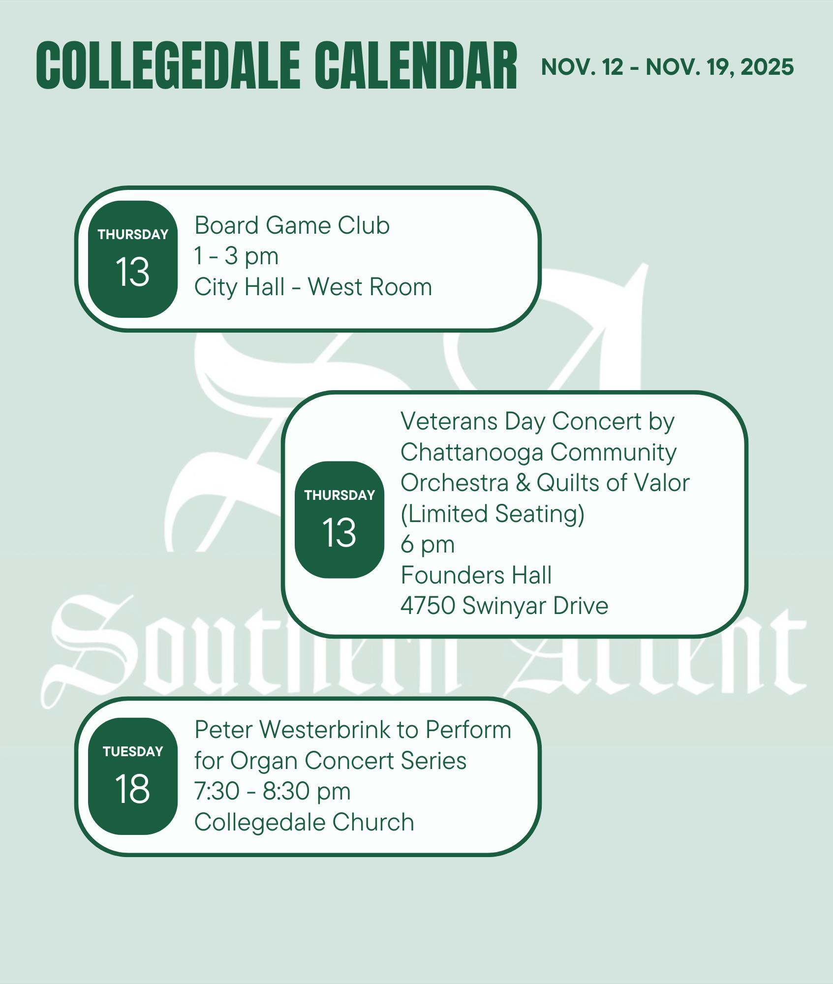 7:30 pm Concert: Eugene A. Anderson Organ Series @ Collegedale Church of Seventh-day Adventists