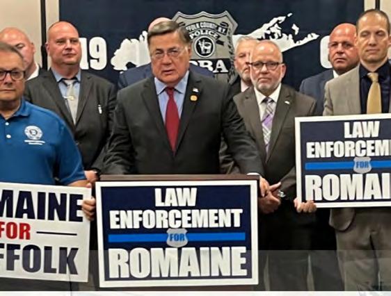 Suffolk’s history,” said PBA President Noel DiGerolamo, noting that it is the first time all of Suffolk’s police entities have endorsed a Republican for the county’s top spot. “Ed Romaine has a solid record of supporting law enforcement, and we are behind him 100 percent,” he said.