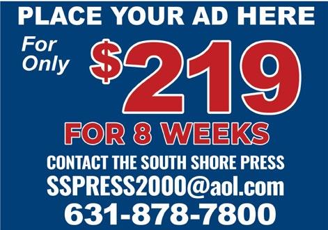 Copyright© 2022 South Shore Press, Inc. All rights reserved. Material appearing herein may not be published, broadcast, rewritten or redistributed in any form. Copying part or all of the editorial or graphic arts in any machinereadable form, making multiple printouts thereof or other uses of the work product contained herein is expressly prohibited and is inconsistent with all applicable copyright laws. Advertisers purchase space and circulation only. All property rights to any advertisements produced for the advertisers by South Shore Press, Inc. using art work and/or typography furnished or arranged by South Shore Press, Inc. shall be the property of South Shore Press, Inc. No such ad or any part thereof may be reproduced or assigned without the express written consent of South Shore Press, Inc. South Shore Press, Inc. assumes no financial responsibility for errors beyond the cost of the actual space occupied by the error. Postmaster: Send address changes to P.O. Box 431, Shirley, N.Y. 11967.