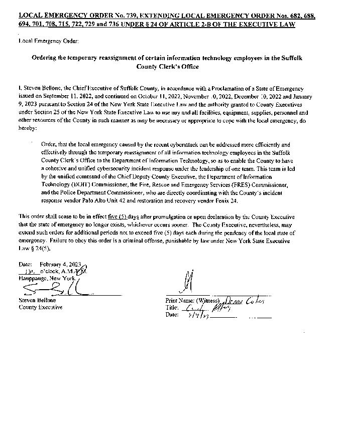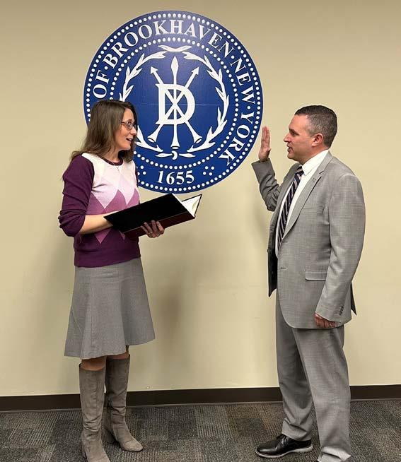On February 1, Kevin J. LaValle (right) was sworn in as the 44th Brookhaven Town Clerk in the Town’s 368-year history. The swearing in was officiated by the Deputy Town Clerk, Lauren Thoden (left). Town Clerk LaValle was voted in after the January 17 special election which was held due to the retirement of former Town Clerk, Donna Lent, who served nine years in the position. Town Clerk LaValle previously served as the Town Councilman for the Third Council District. He was first elected to the Town Council in 2013. Town Clerk LaValle was educated in the Middle Country School District, graduating from Centereach High School in 1995. He has a Bachelor of Arts Degree with a major in Political Science from Salisbury University where he graduated in 2000. He currently resides in Selden.