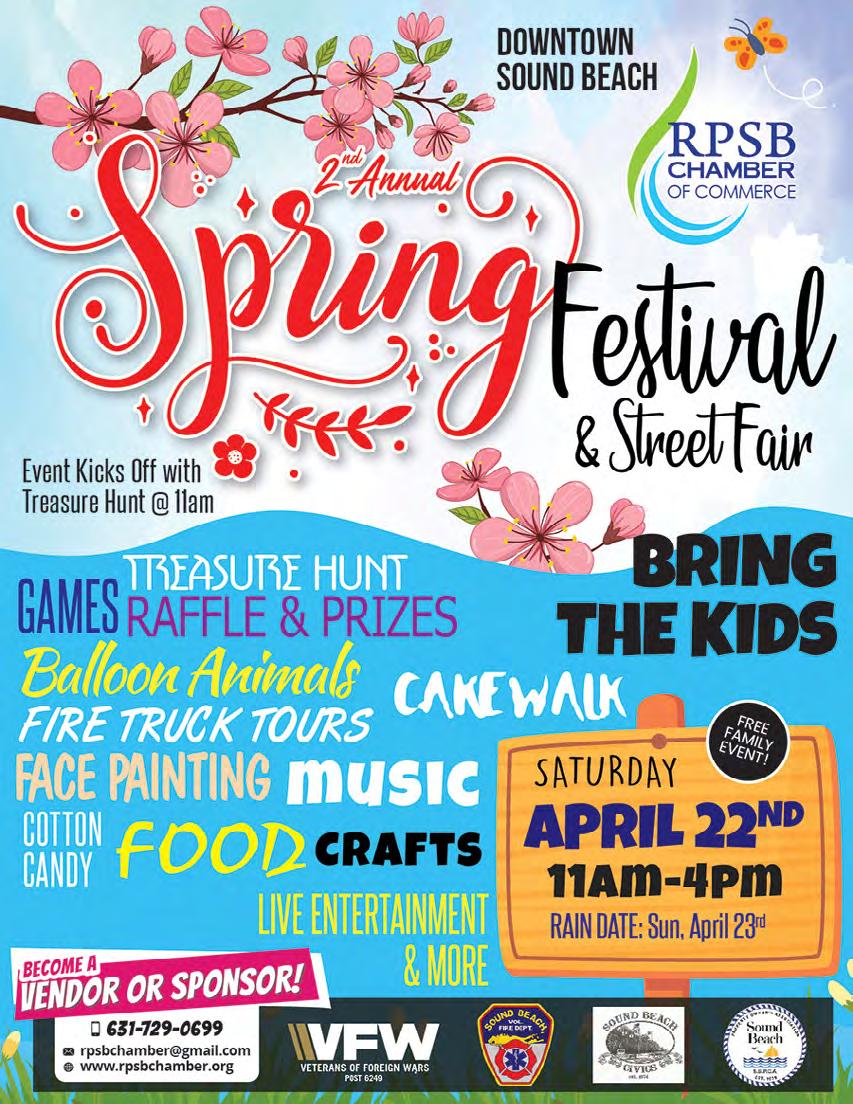 Copyright© 2023 South Shore Press, Inc. All rights reserved. Material appearing herein may not be published, broadcast, rewritten or redistributed in any form. Copying part or all of the editorial or graphic arts in any machinereadable form, making multiple printouts thereof or other uses of the work product contained herein is expressly prohibited and is inconsistent with all applicable copyright laws. Advertisers purchase space and circulation only. All property rights to any advertisements produced for the advertisers by South Shore Press, Inc. using art work and/or typography furnished or arranged by South Shore Press, Inc. shall be the property of South Shore Press, Inc. No such ad or any part thereof may be reproduced or assigned without the express written consent of South Shore Press, Inc. South Shore Press, Inc. assumes no financial responsibility for errors beyond the cost of the actual space occupied by the error. Postmaster: Send address changes to P.O. Box 431, Shirley, N.Y. 11967.