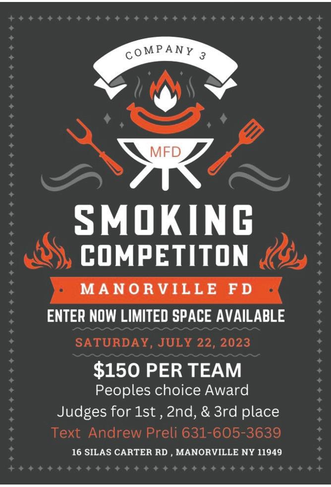 ByRobertChartukThose craving a delicious barbeque can get their fill at the Manorville Fire Department’s Smoke Eaters Competition July 22 at their Silas Carter Road firehouse.