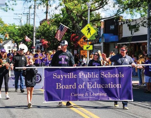 The Sayville community was filled with school spirit and a strong sense of tradition during its annual high school homecoming celebration — but it was on the field where the best show of all took place. The streets were packed with Sayville Public Schools students as a vibrant parade snaked its way through the community. Students showcased their class pride with creatively designed banners and floats, drawing cheers from families and residents who lined the streets. Members of the Sayville High School cheer squad, dance team, and marching band also entertained the enthusiastic
