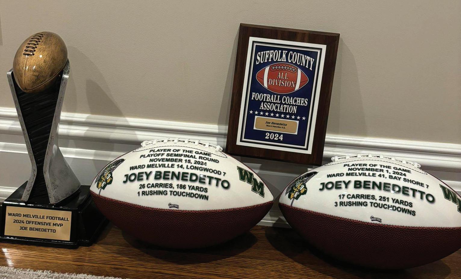 The scoring didn’t stop there early in the game, as Ward Melville led 35-6 at the half. Joey Benedetto ran for nearly 150 yards on the day, highlighted by a huge 70-yard touchdown run after taking a hand-off.