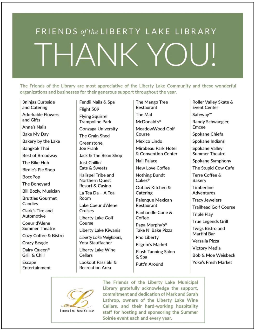 The Splash is committed to serving Liberty Lake through excellent community journalism. We can’t do it at all without you, our readers, and we can’t do it for long without support from our advertisers. Please thank our business partners and look to them when offering your patronage.