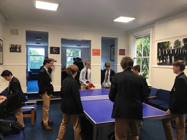 Year 9s getting some practice in before opening round matches against the Upper Sixth in the house table tennis tournament