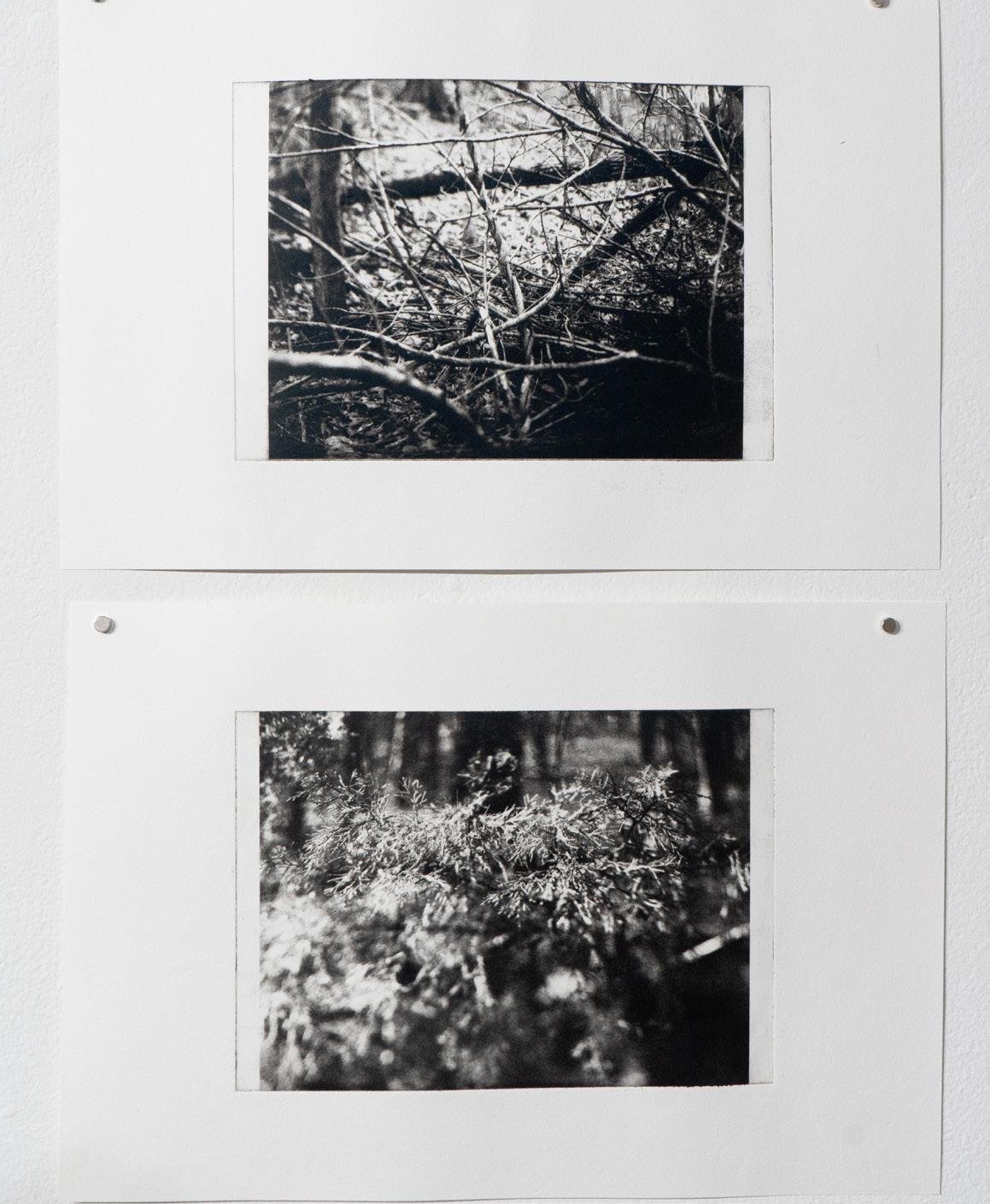 Welland’s senior exhibition photos connect nature and the human form. Her work visually represents communication and similarity between people and nature. Some of her photos feature hands reaching for twisting branches or bare bodies caressing tree trunks.