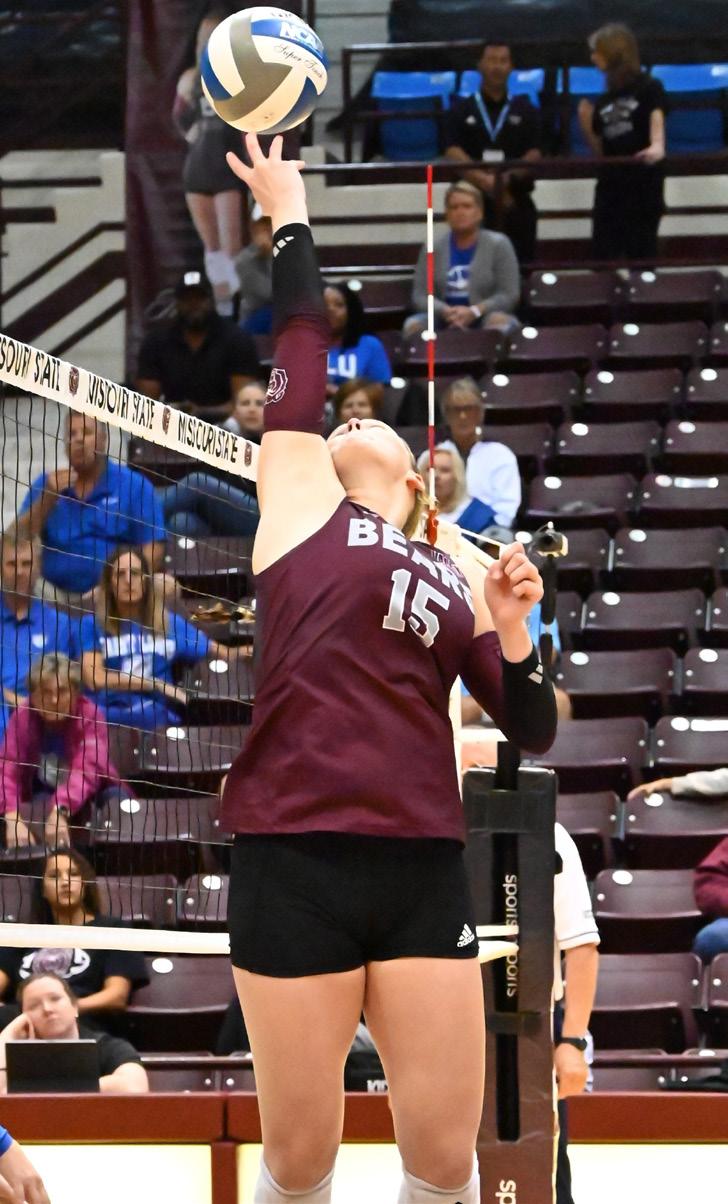 Despite suffering an injury halfway through her sophomore season, Bushnell still totaled 46 blocks and hit .300 and above seven times.