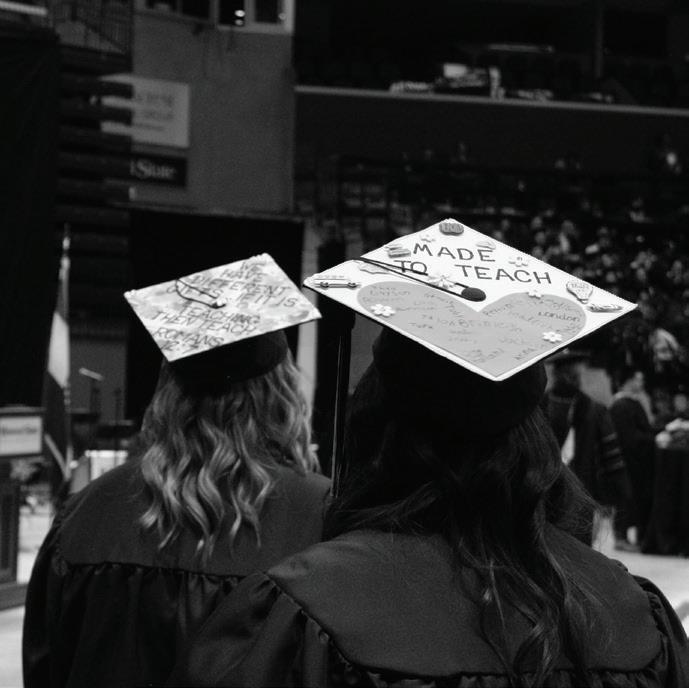 On the cover: Some graduates opt to decorate their caps for graduation, usually in relation to their major or future field. Here, a future educator included the names of students on the cap. Photo by W. Paul Bohlen.