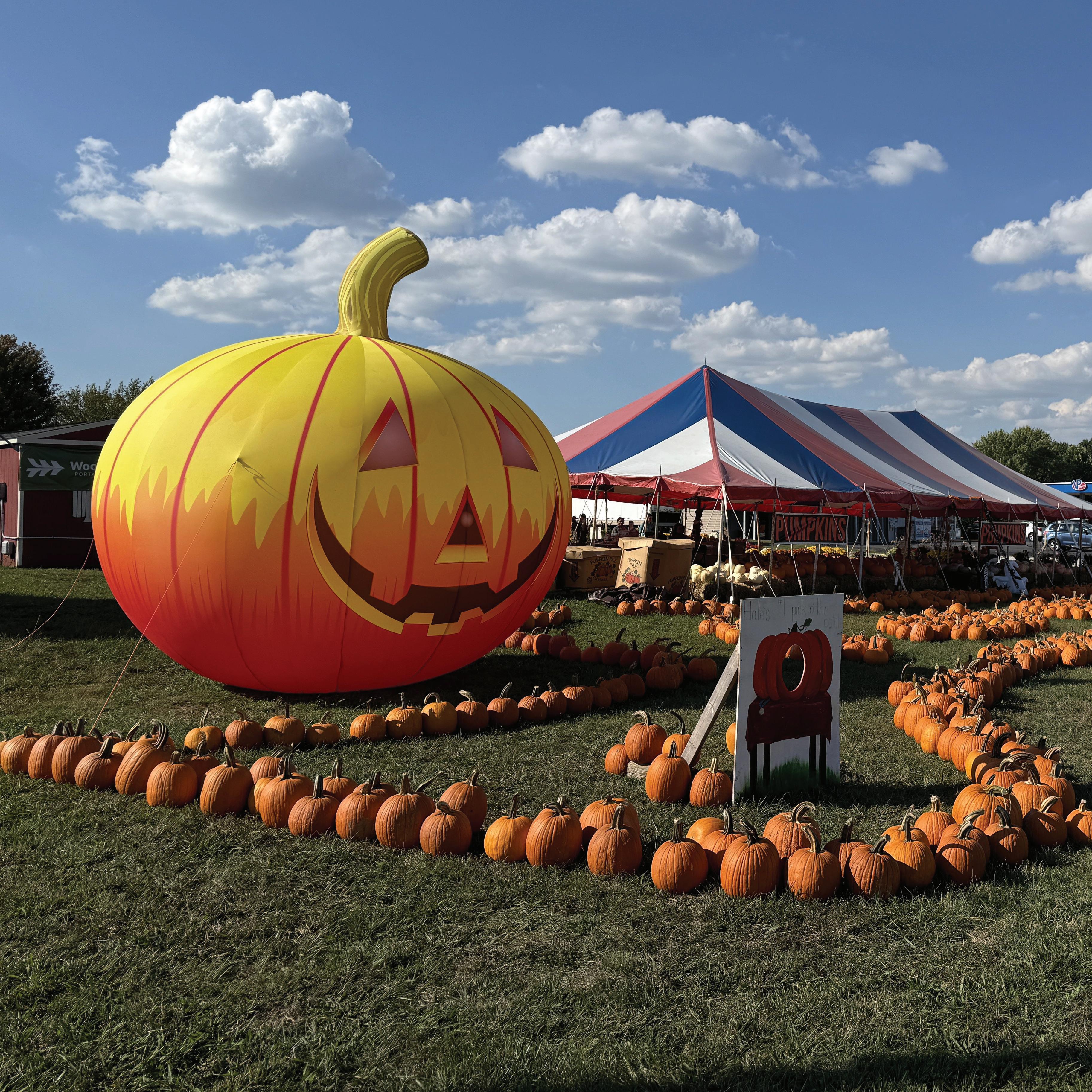 An inflatable pumpkin and pumpkin patch in Nixa, Missouri, just south of Springfield.