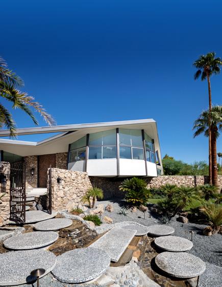 unique vacation home that has been completely transformed with an updated midcentury design that blends Bohemian and Hollywood Regency style. Modernism Week sponsors Bang & Olufsen, Brizo, California Closets, DEDON, Dunn-Edwards, Ferguson Bath, Kitchen & Lighting Gallery, Flor, JennAir, Modern Twig, and Willis generously contributed to this project.
