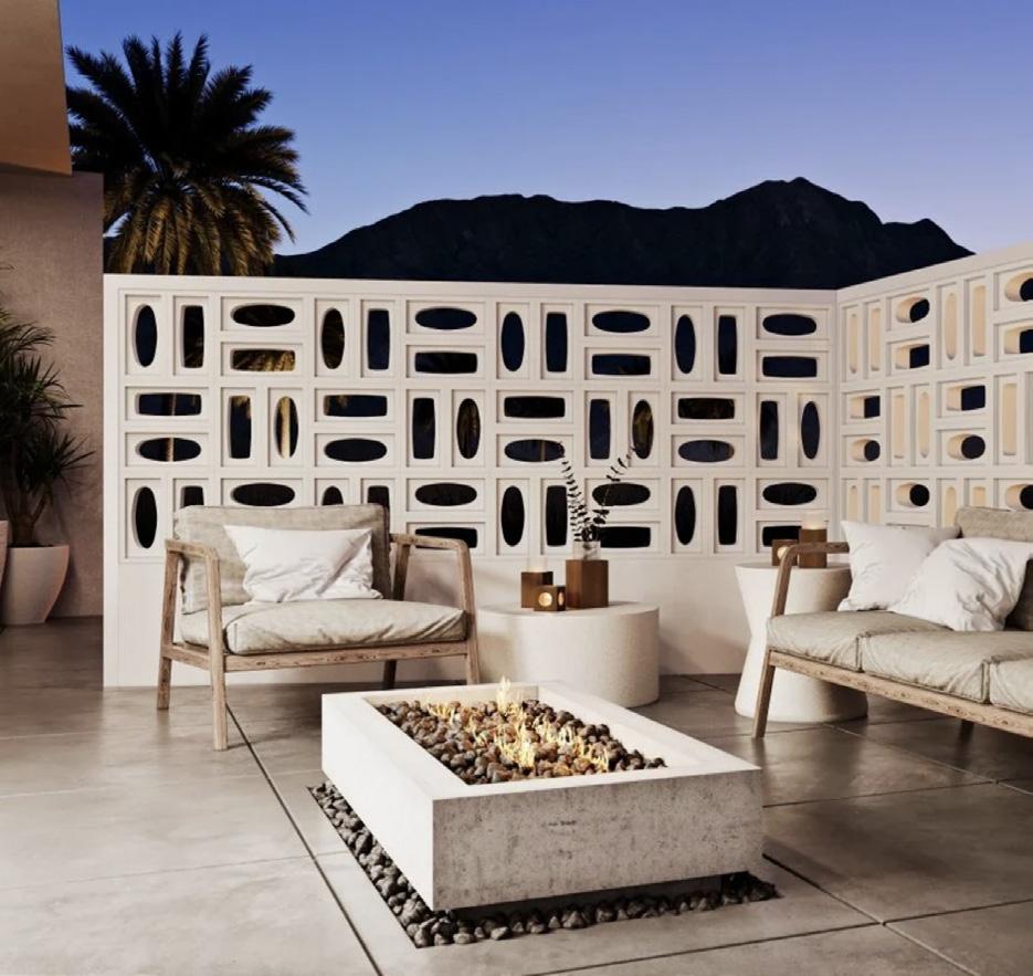 modern design in one of Palm Springs’ most celebrated neighborhoods. Built in 1957 and recently reimagined by H3K Home + Design, this architectural gem creates a seamless dialogue between past and present through sleek lines and warm textures. A dramatic decorative breeze block entry leads to interior spaces that showcase the era’s signature post-and-beam style, where soaring ceilings and walls of glass invite sunlight, mountain views, and effortless flow. Modernism Week sponsors Brizo, California Closets, Dunn-Edwards Paints, Ferguson Home, Flor, James Martin Vanities, Kichler, and Monogram contributed to this home’s stunning renovation.
