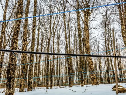 Paul and his Dad tapped around 500 to 600 taps in the 1970’s, all with buckets. In 1984, theyputinthefirstpipelinewithapproximately 150taps.Thenextyear,thewholebushwason pipeline. They always had a used evaporator, approximately,4×8,andboiledinthebushwith nohydrountil1991,whenanewbuildingwas built near the house. Now there is water and hydro for late night boiling. The building includesanevaporationroom,astore,akitchen and a small bottling room. Once this building was erected, we were able to expand and now haveapproximately2,500taps.