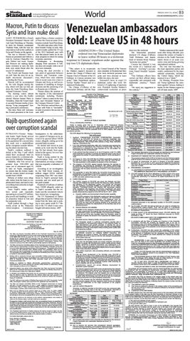 Najib questioned again over corruption scandal PUTRAJAYA―Former Malaysian leader Najib Razak arrived at the anti-graft agency Thursday to be questioned for a second time this week over a multi-billiondollar corruption scandal following his shock election loss. Najib’s coalition suffered a defeat at the May 9 poll which ended their six-decade hold on power, beaten by a reformist alliance led by Mahathir Mohamad. Mahathir, who first served as premier from 1981-2003 and came out of retirement aged 92 to take on Najib, campaigned on claims that the former leader and his cronies looted sovereign wealth fund 1MDB. Billions of dollars were allegedly stolen from the fund in a sophisticated fraud, and used to buy everything from artworks to highend real estate. Since Najib’s ouster, police have seized cash reportedly amounting to at least $25 million, plus jewels and handbags in raids on properties linked to him and his unpopular wife. Najib pushed through a huge media scrum at the Malaysian Anti-Corruption Commission