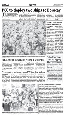 In a statement, PCG spokesperson Armand Balilo said that the MRRV 4409 BRP Cabra and SARV 3504 BRP Davao Del Norte will sail for Boracay on Sunday, April 22. The PCG will deploy three groups namely the