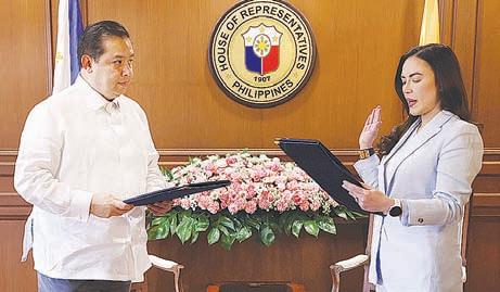 OATH OF OFFICE. Speaker Ferdinand Martin G. Romualdez administers the oath of office to new Motion and Television Review and Classification Board (MTRCB) Chair Diorella Maria “Lala” Sotto at the House of Representatives on Monday. Ver Noveno