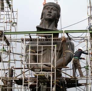 The giant statue of Shri Krishna and Arjuna stands tall at the Nusa Dua Beach