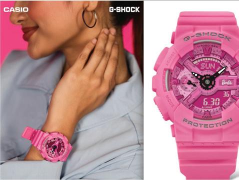 sional design achieved by layering small components. The watch has a sleek monochromatic pink color scheme, accented with subtle variations across each component. The Barbie logo appears on the band loop and at the 3 o’clock position, and a heart-motif indicator adorns the inset dial at the 9 o’clock position. The GMA-S110BE is priced at ₱12,020.00 and is available at select authorized G-SHOCK stores nationwide and at CASIO’s online store in the Philippines. https://www.casio.com/ph/watches/ gshock/product.GMA-S110BE-4A/ You may also check our social media pages at: Casio Facebook: https://www.facebook.com/CASIOWatchesPH Casio Instagram: https://www.instagram.com/casiowatches.philippines/Casio TikTok: https:// www.tiktok.com/@casiowatchesph