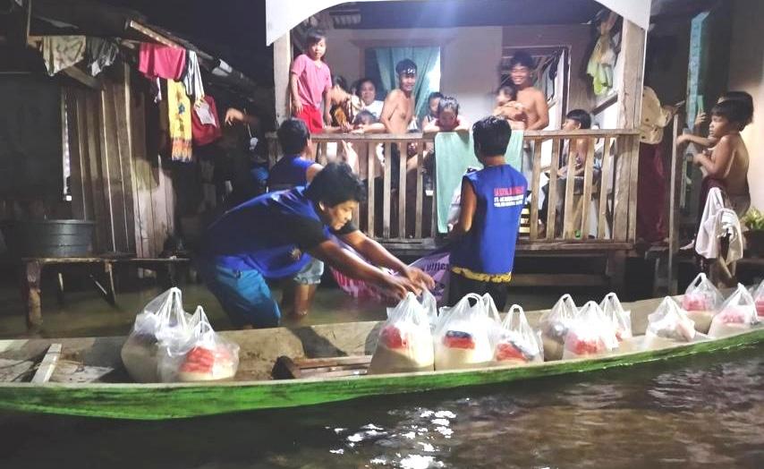 RELIEF GOODS. Relief workers deliver goods by banca to flood-affected communities in
