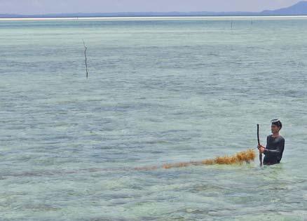 Yet, prices have been volatile in recent years. Competition from abroad caused local prices of raw dried seaweed to plummet to as low as P25 per kilo (about US$0.44) in 2024, which means farmers operate at a loss. As profits disappear, some turn to unsustainable practices to survive, like mangrove cutting for charcoal, spearfishing and gathering rocks from the seabed to crush into gravel. Other problems include iceice disease, says Siyulay Juhan, a seaweed farmer from the same province. Once the crop is infected with the disease—a bacterial infection resulting from higher sea temperatures driven by climate change—the farmers are either forced to harvest it quickly before its condition gets worse or simply dump it. Building skills