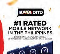 The KAYA DITO Promise At the heart of DITO Telecommunity’s journey is the KAYA DITO Promise — a commitment to empower every Filipino telecommunity with connectivity that not only keeps up with digital demands but also fuels aspirations. This achievement stands as proof that DITO is not only delivering on its word but also redefining what network service means in a fastevolving, hyper-connected world. Anchored on four guiding principles, the KAYA DITO Promise reflects DITO’s service DNA. First is Empowerment, where DITO delivers what others merely promise, ensuring that performance consistently meets the expectations of Filipino telecommunities, enabling individuals, families, and businesses to thrive in a digital-first society. Second is Innovation, with the company constantly pushing beyond conventional boundaries to bring forward next-generation solutions, from 5G standalone capabilities to immersive digital experiences, that will help Filipinos maximize the power of technology. Third is Consistency, as demonstrated by DITO’s four consecutive #1 ratings from Opensignal, proving that superior service is not a one-time feat but a sustained standard of excellence customers can rely on every day. Lastly, People-First embodies DITO’s mission to serve the Filipino by removing barriers to reliable connectivity and ensuring that no community is left behind, keeping people connected anytime and anywhere. Together, these tenets form the essence of the KAYA DITO Promise — a brand of service that prioritizes progress, trust, and genuine care for the people it serves. As DITO moves beyond its rapid growth phase, these principles remain the foundation of its longterm vision to deliver world-class coverage, elevate service quality, and create a truly empowered digital nation.