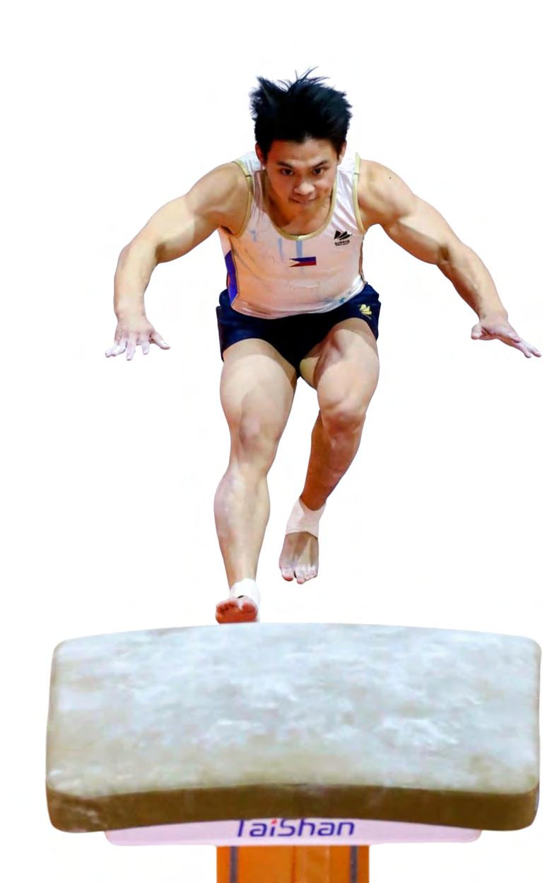 GOLDEN AGAIN. Carlos Yulo is up in the air in the men’s vault event on Saturday at the 53rd World Artistic Gymnastics Championships, making it to the top of the podium.