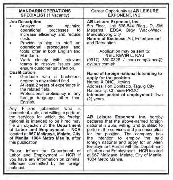 VIRGILIO DC GALVEZ, Editor email: vcgalvez@manilastandard.net