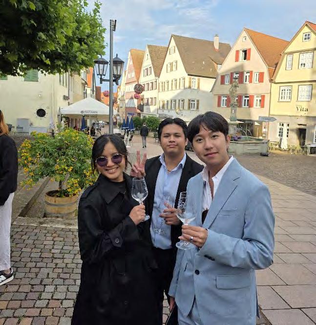 The group toured key sites, including the Stuttgart City Library, the University of Public Administration and Finance Ludwigsburg, and Villa Reitzenstein. In Heidelberg, students explored the historic university town and castle complex. In Esslingen, they took part in the Schwörfest celebration, a centuriesold democratic tradition that showcased local community life and volunteerism. In Freiberg am Neckar, Mayor