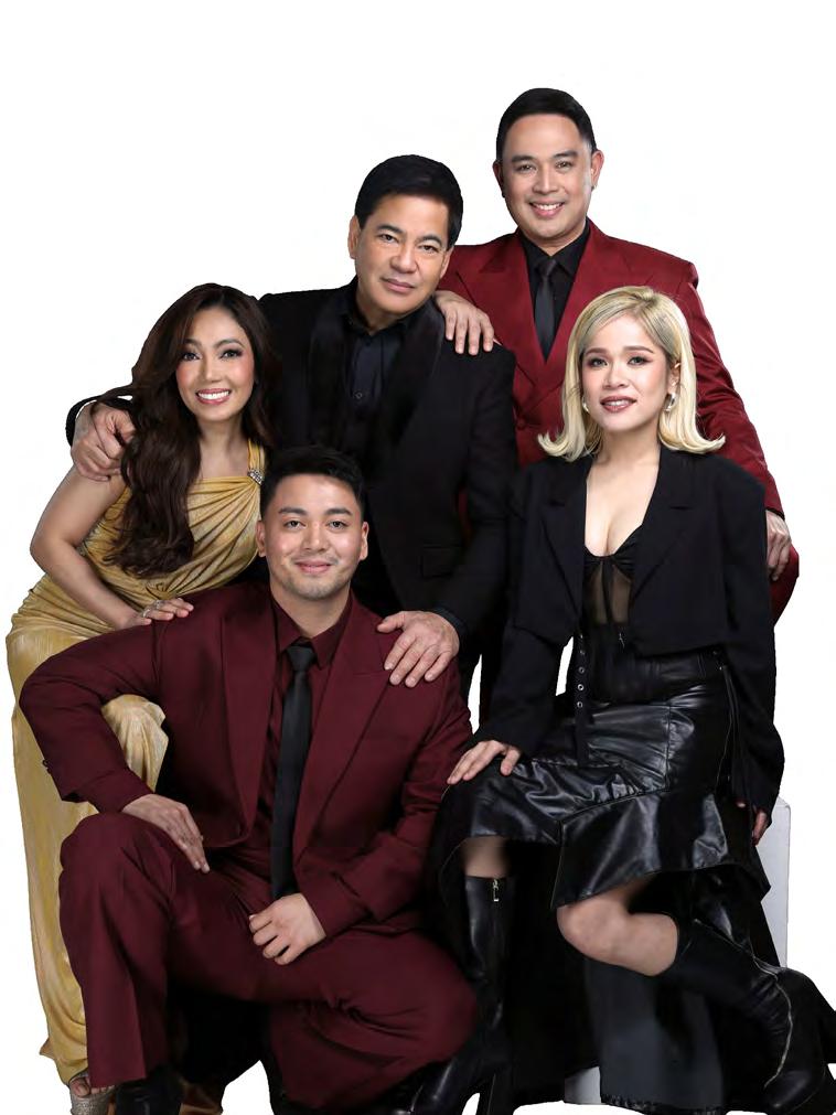 From left: The ‘Champions of the Heart’ lineup— Sofronio Vasquez, Jona, Martin Nievera, Klarisse de Guzman, and Jed Madela—gathers for a press conference ahead of their Valentine’s concert