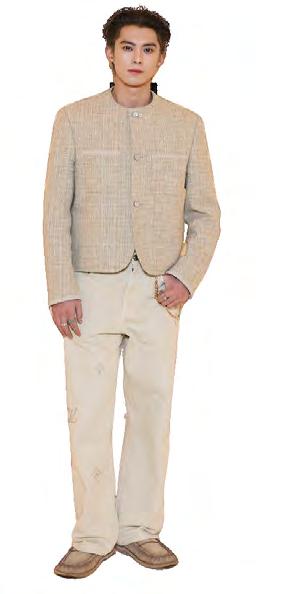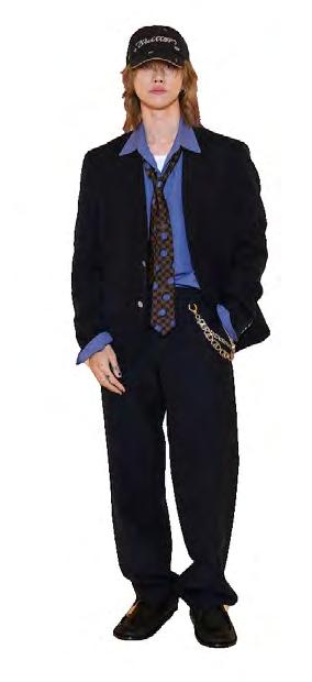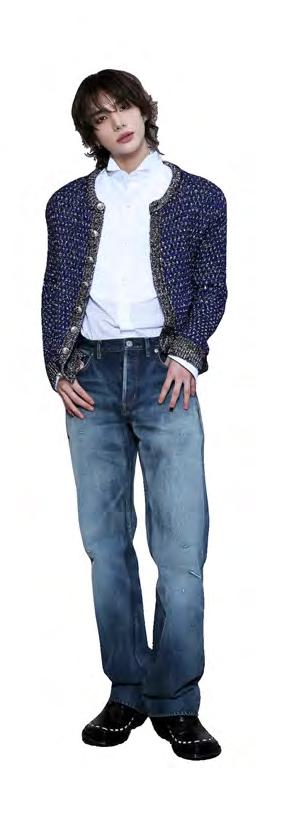 wash jeans. The mix of traditional tailoring and casual denim echoed Dior’s approach to modern menswear, while the look was further highlighted by his new layered hairstyle, which drew attention throughout the show.