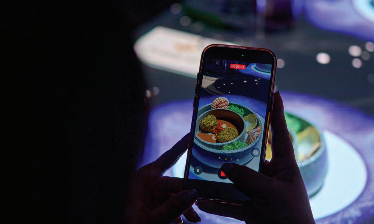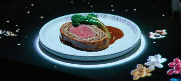 chronized formation, underscoring the restaurant’s emphasis on polished, attentive service. At the Chef’s Table Show, attendees were invited into the heart of the kitch-